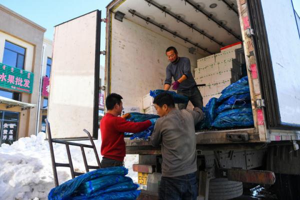 On November 11th, in Tongliao Yunda Green Agricultural and Sideline Products Wholesale Market, the staff were carrying vegetables. Xinhua News Agency reporter Liu Lei photo