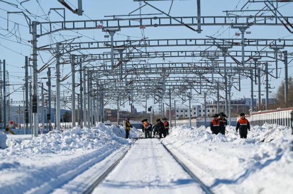On November 11th, at the south marshalling yard of Tongliao Station of China Railway Shenyang Bureau Group Co., Ltd., officers and men of the armed police prepared to clear the snow. Xinhua News Agency reporter Lian Zhenshe