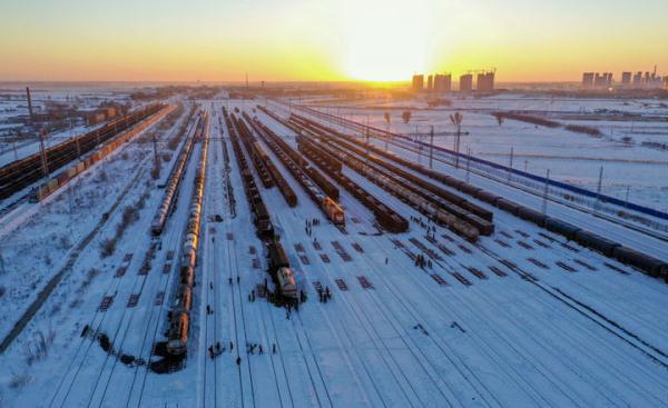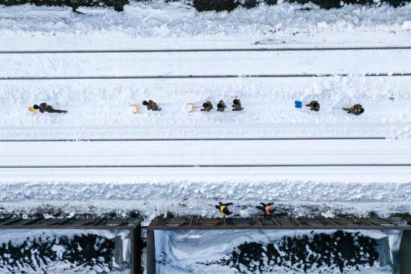 On November 11th, in the south marshalling yard of Tongliao Station of China Railway Shenyang Bureau Group Co., Ltd., officers and men of the armed police and railway staff cleared the snow (photo of drone). Xinhua News Agency reporter Lian Zhenshe