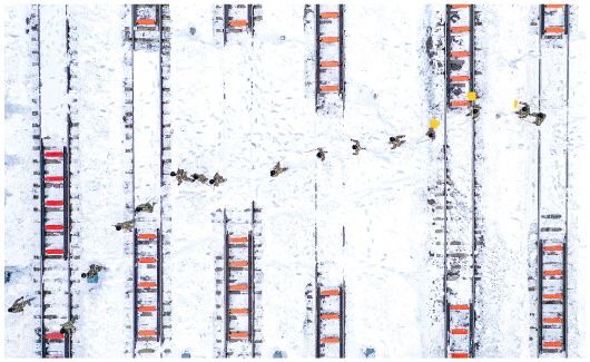 On November 11th, in the south marshalling yard of Tongliao Station of China Railway Shenyang Bureau Group Co., Ltd., officers and men of armed police cleared the snow (photo of drone). Xinhua News Agency reporter Lian Zhenshe