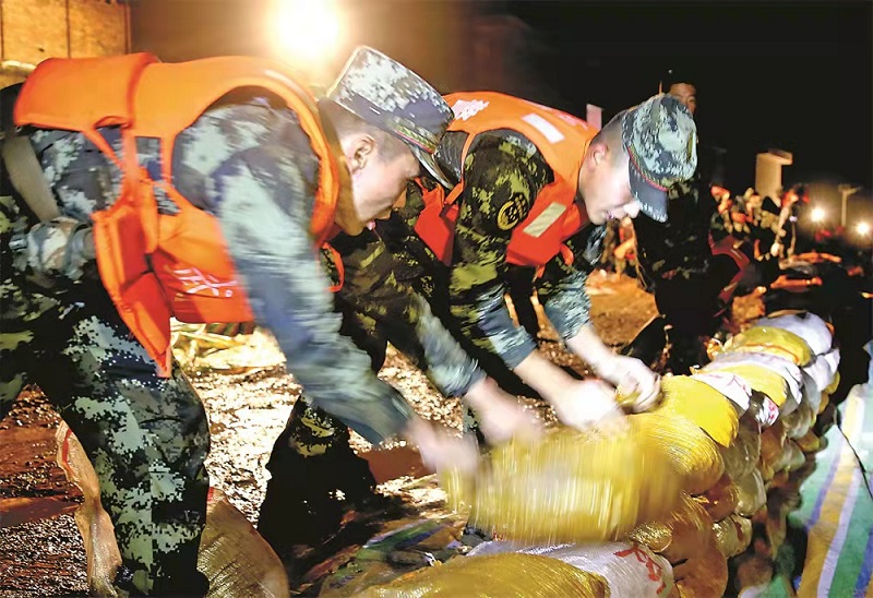 Race against time to promote various flood control and emergency rescue work. Image provided by Yuncheng Daily.