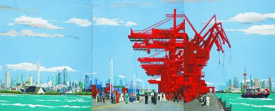 New Pattern of Opening to the Outside World (oil painting) Sun Hongmin, Jiang Zhe, Wang Xue, Huang Weichao, Jiang Hao, Sun Guangxu, Huang Haozhang and Jia Wenguang.